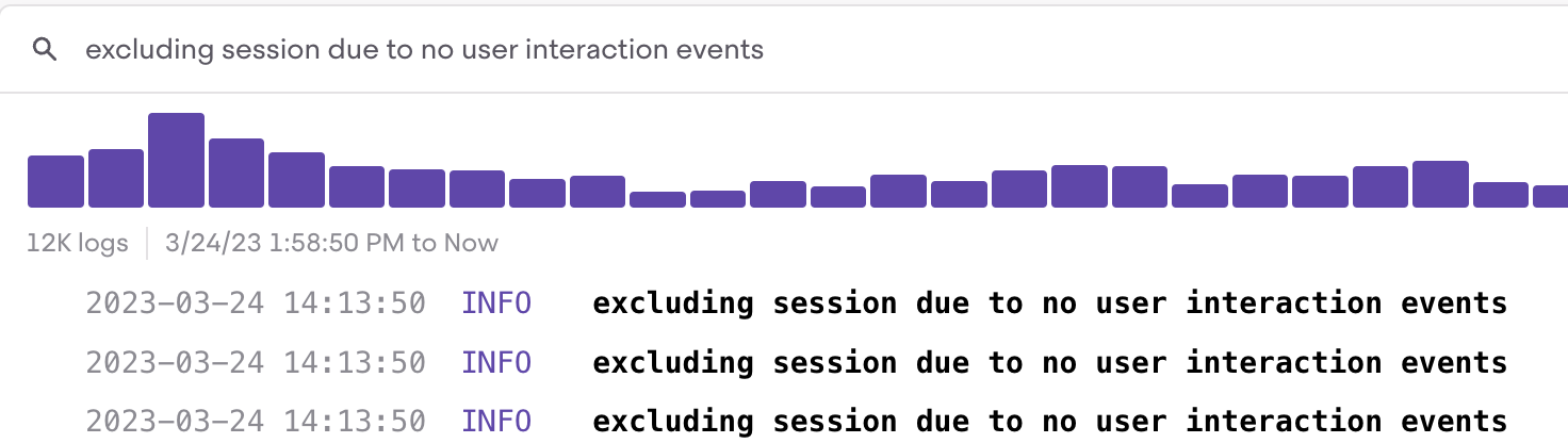 We can find this log by typing excluding session due to no user interaction events.