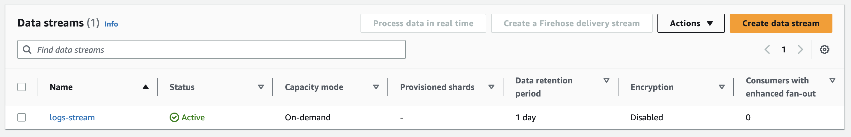 First, create a Kinesis Data Stream.